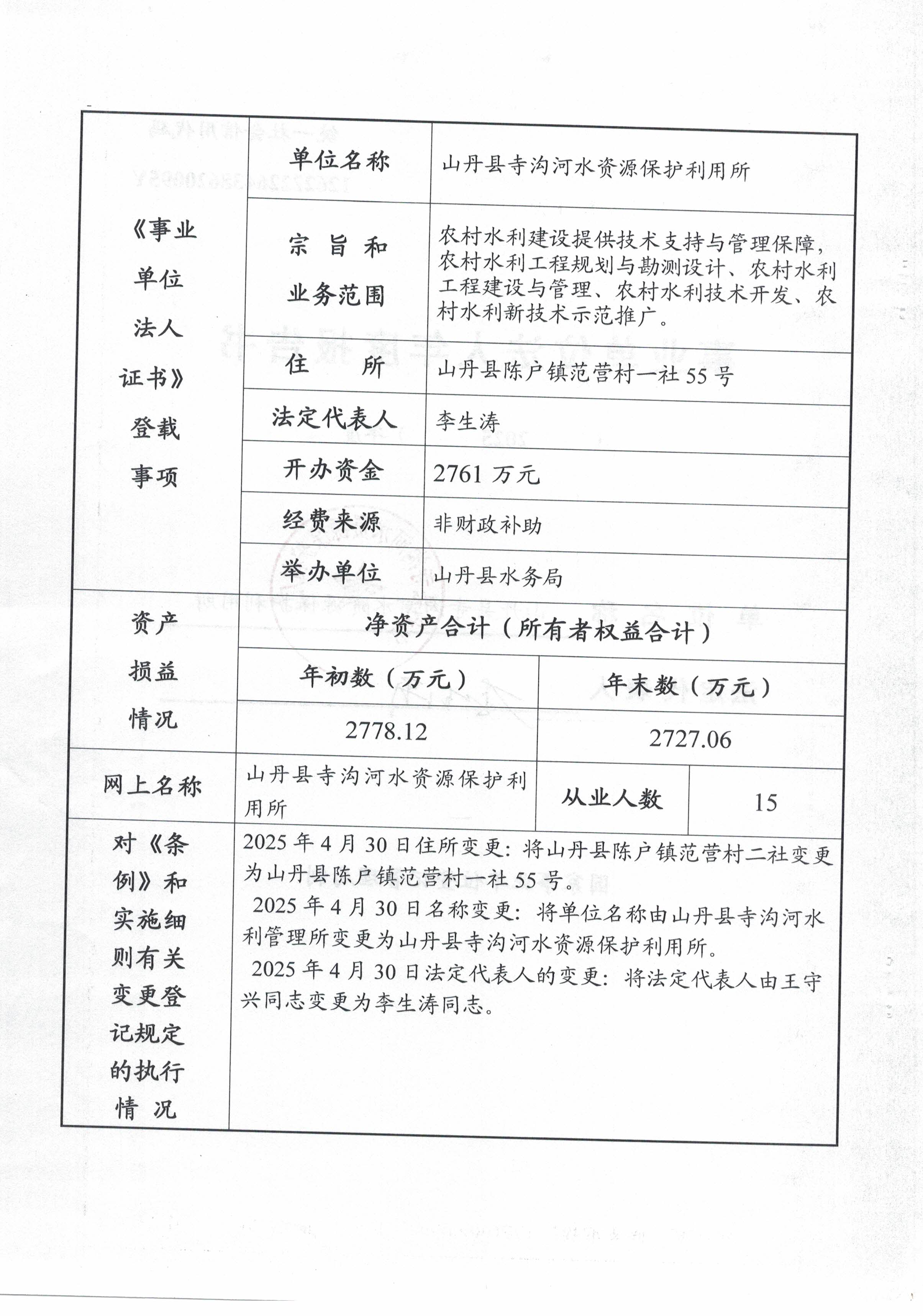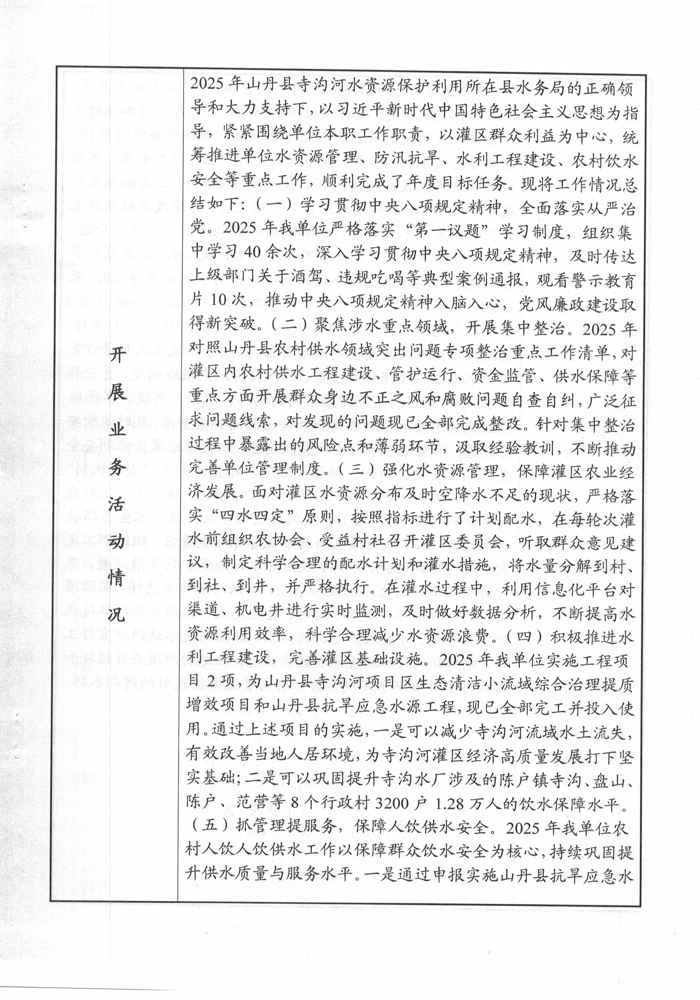 山丹县水务局寺沟河水资源保护利用所2025年事业单位法人年度报告书