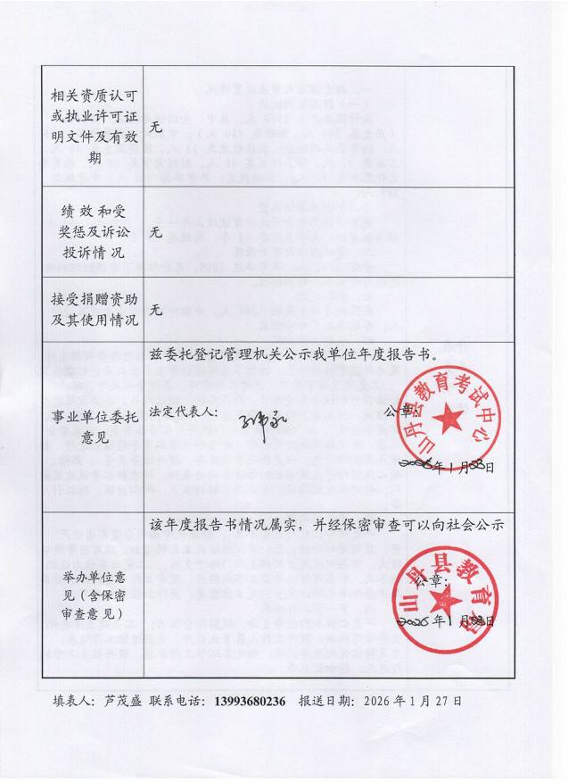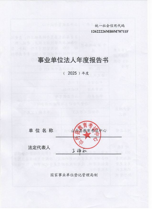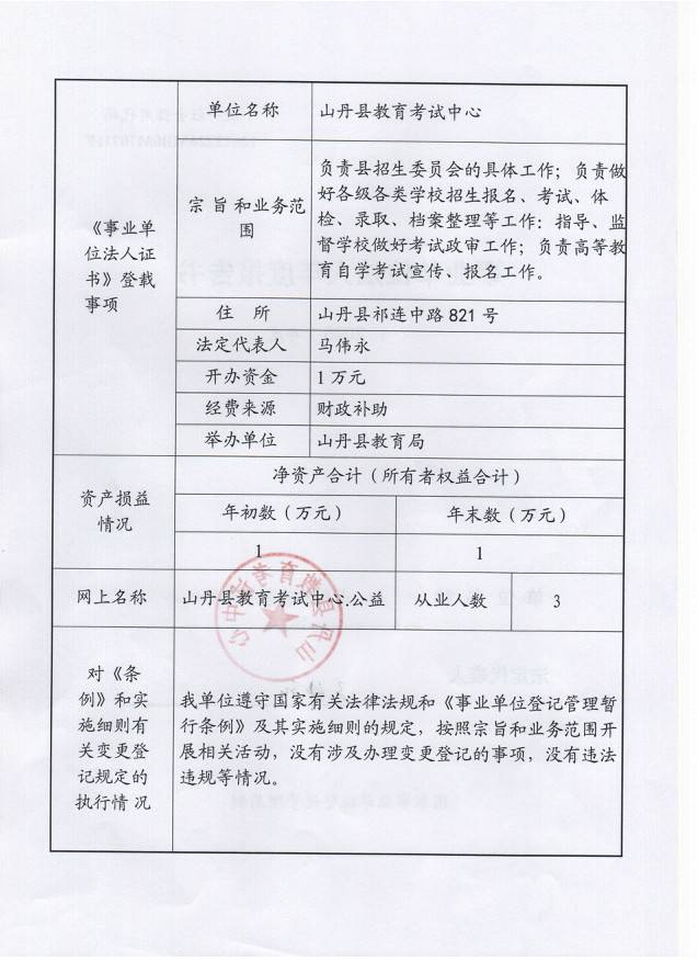山丹县教育考试中心事业单位法人年度报告