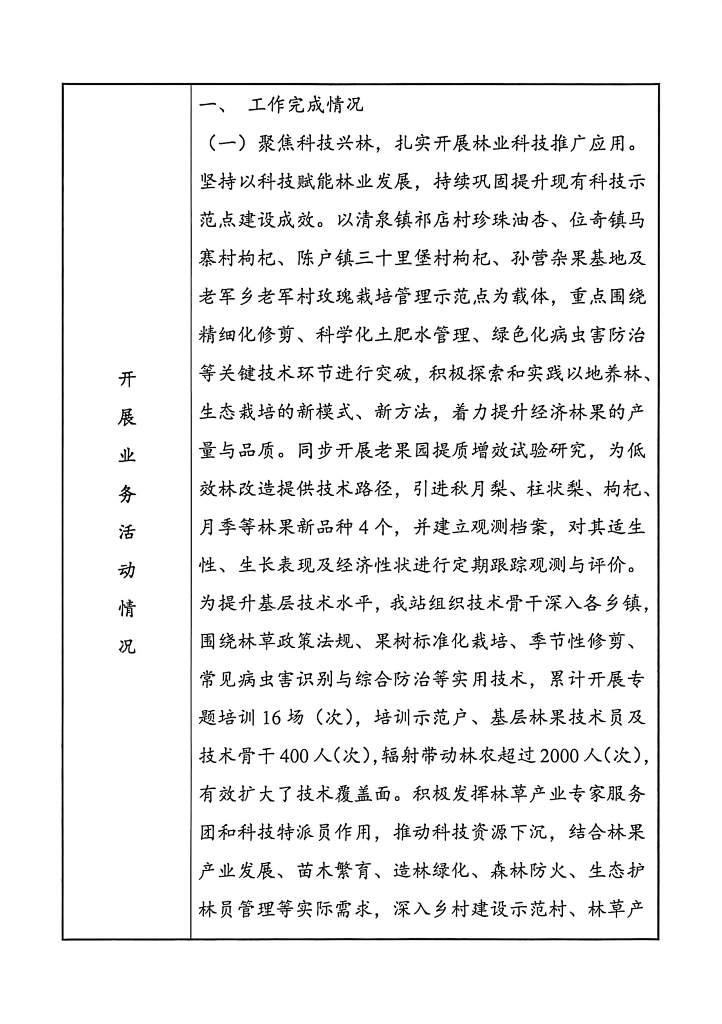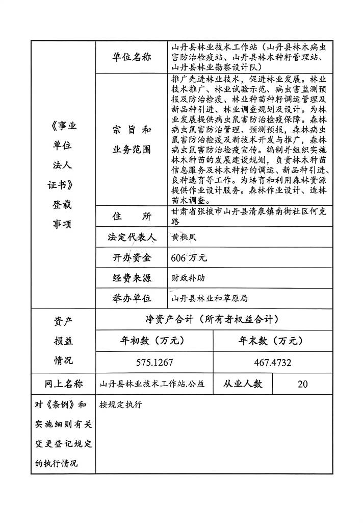山丹县林业技术工作站2025年度事业单位法人年度报告书