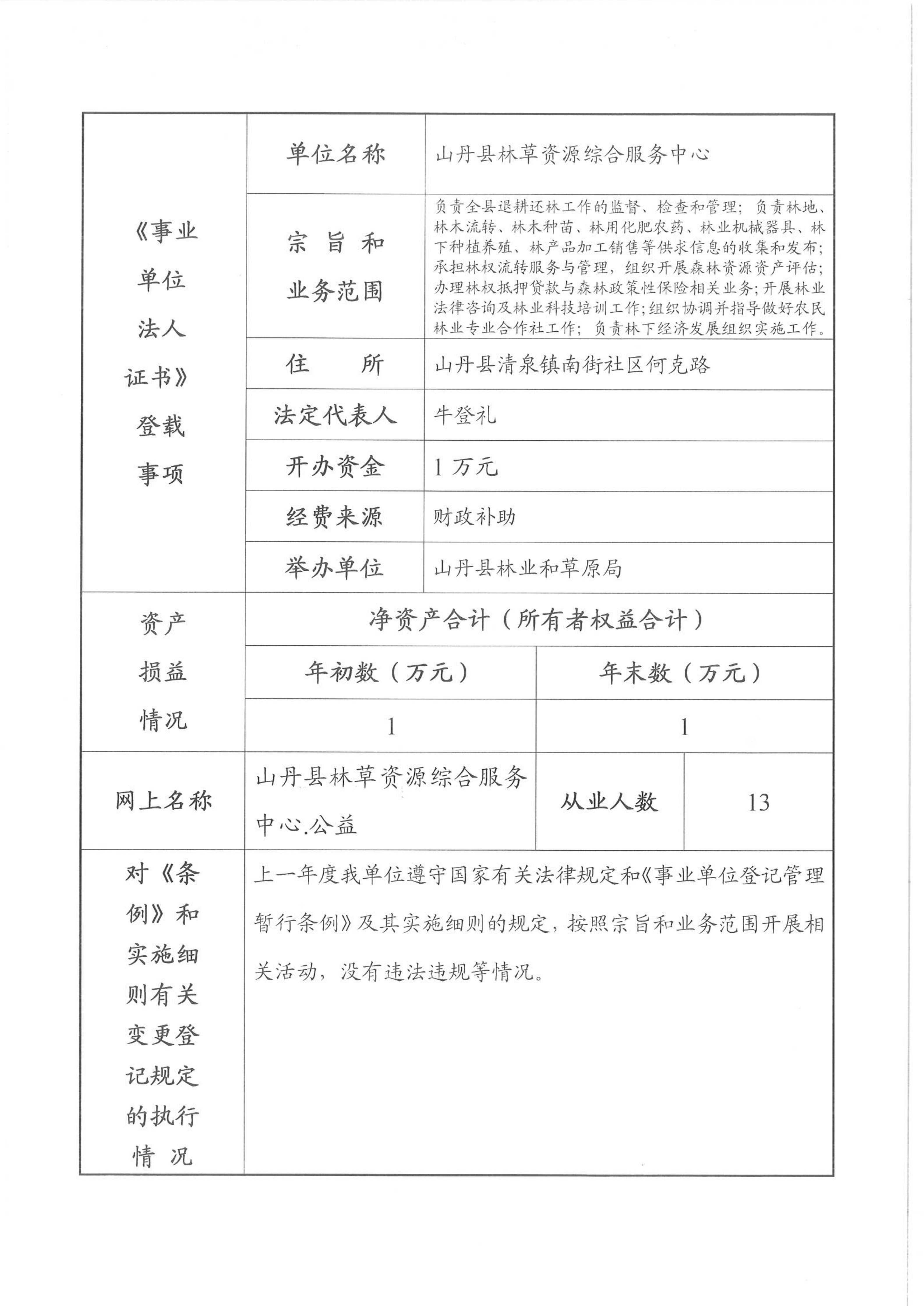 山丹县林草资源综合服务中心2025年度事业单位法人年度报告书