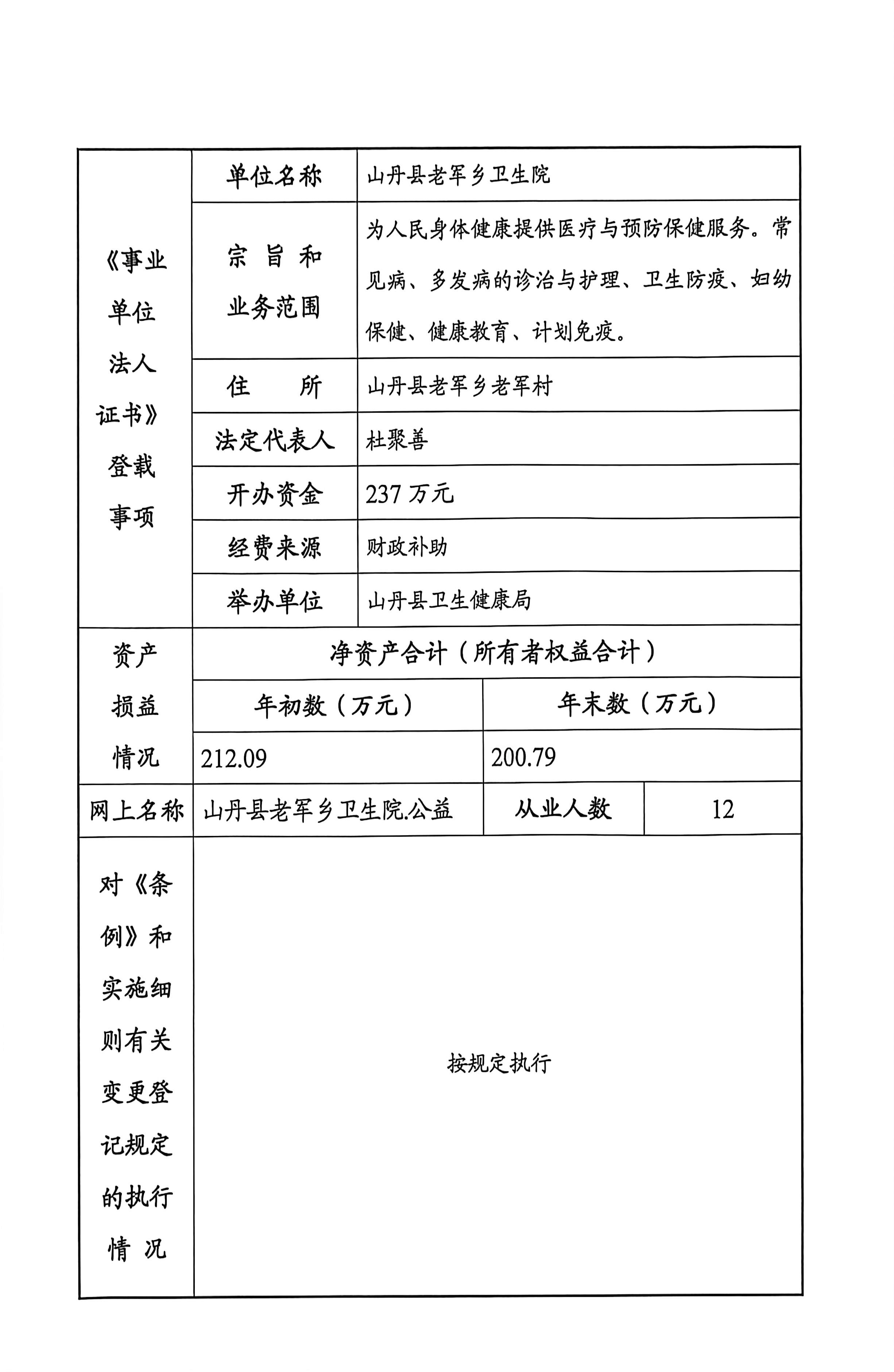 山丹县老军乡卫生院2025年度事业单位年度法人报告书