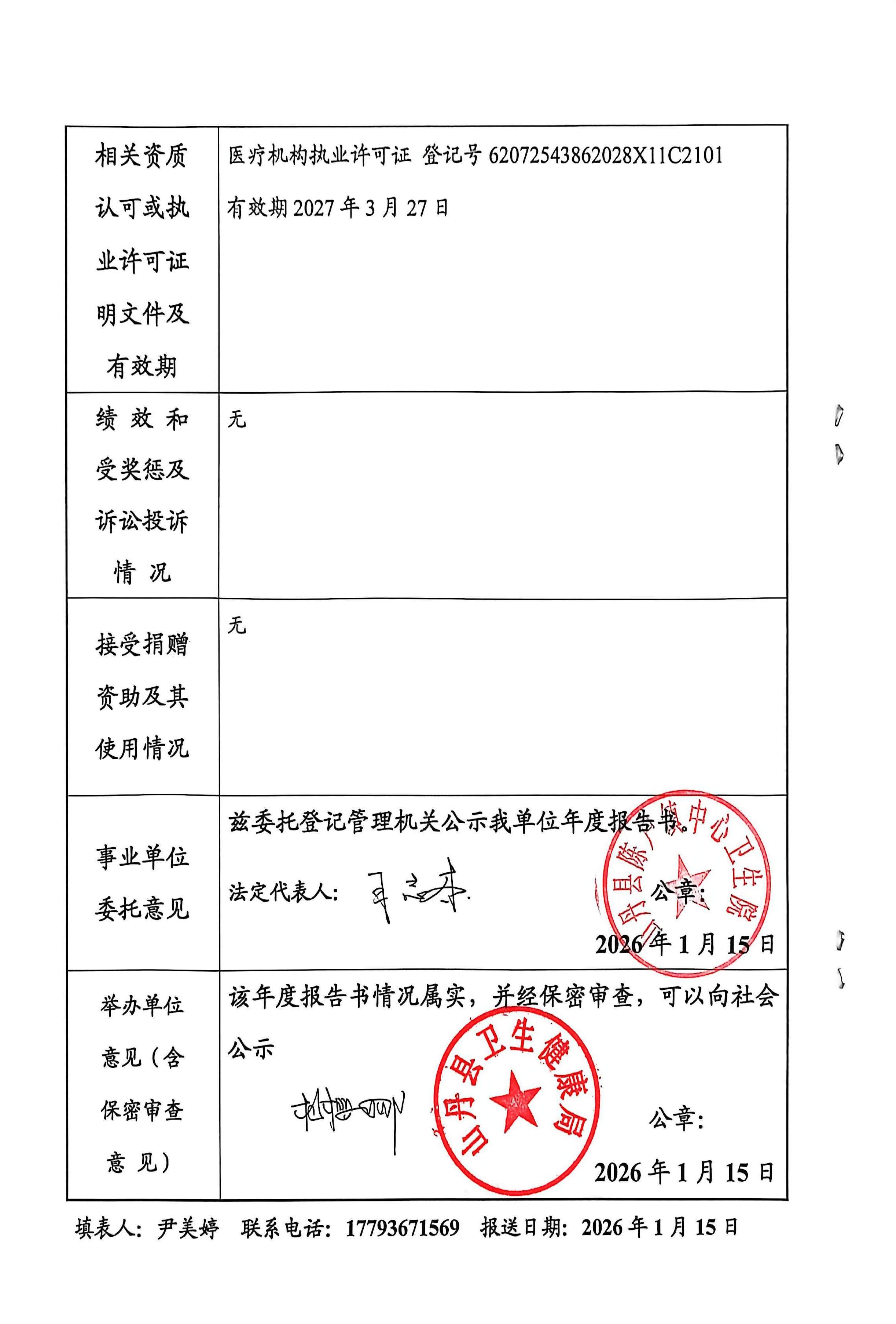 山丹县陈户镇中心卫生院2025年度事业单位年度法人报告书