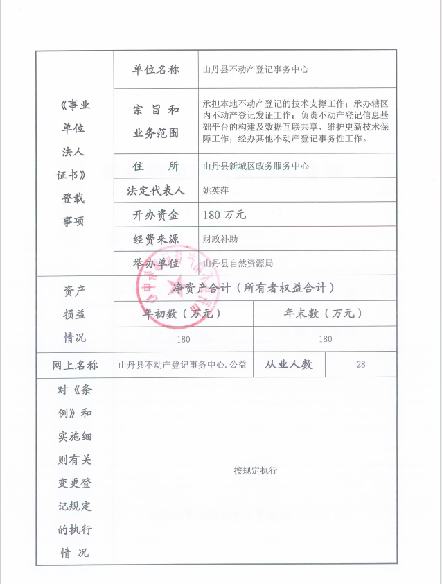 事业单位法人年度报告书(山丹县不动产登记事务中心)