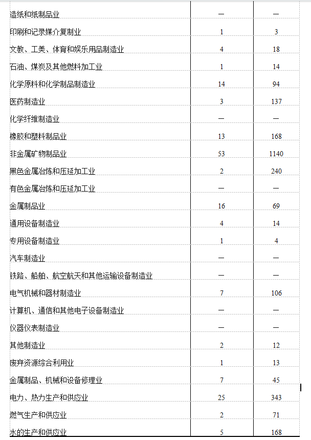 在工业企业法人单位中,采矿业31个,制造业179个,电力、热力、燃气及水生产和供应业32个,分别占12.81%、73.97%和13.22%。在工业行业大类中,非金属矿物制品业、农副食品加工业、电力、热力生产和供应业企业法人单位数位居前三位,分别占21.90 %、11.16 %和10.33 %。