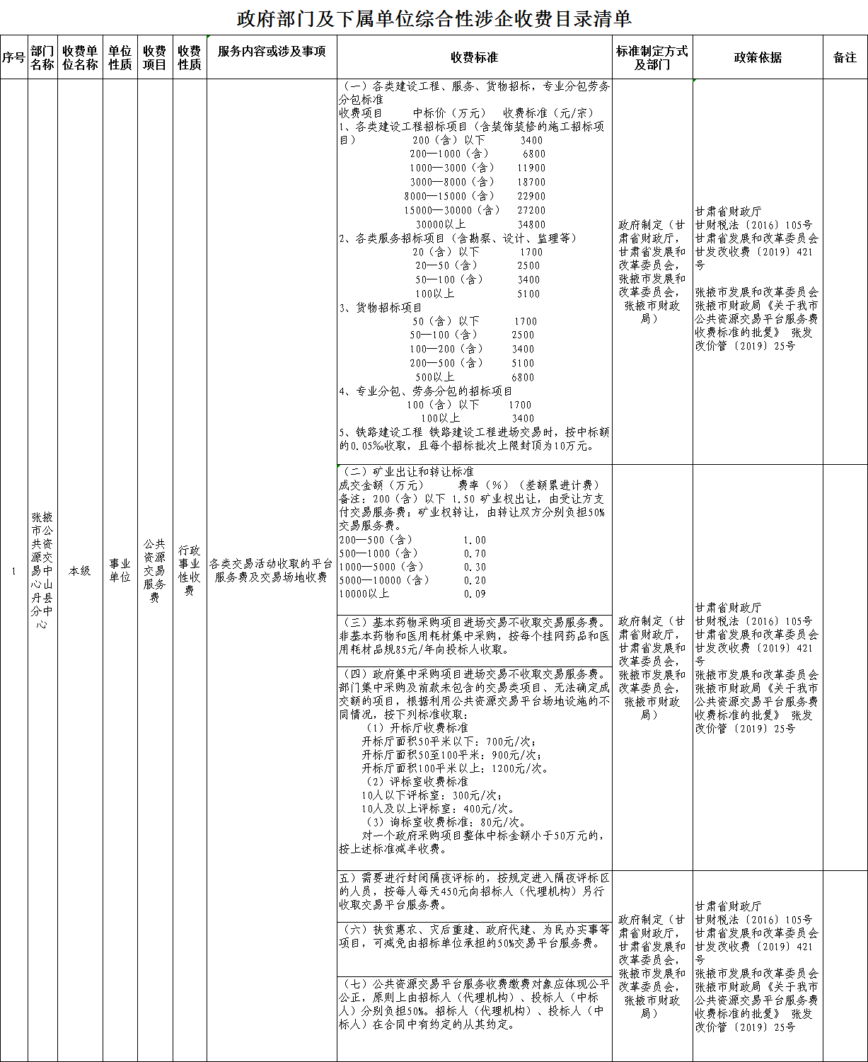 政府部门及下属单位综合性涉企收费目录清单(张掖市公共资源交易中心山丹县分中心))