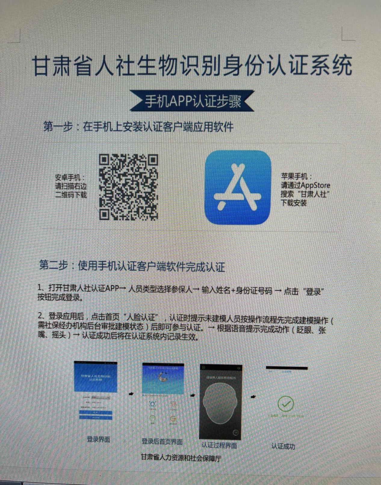 甘肃省人社生物识别身份认证系统手机APP认证步骤