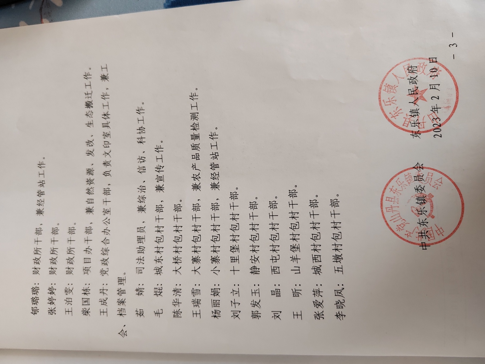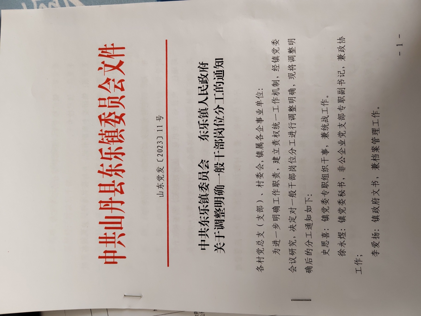 中共东乐镇委员会 东乐镇人民政府 关于调整明确一般干部岗位分工的通知