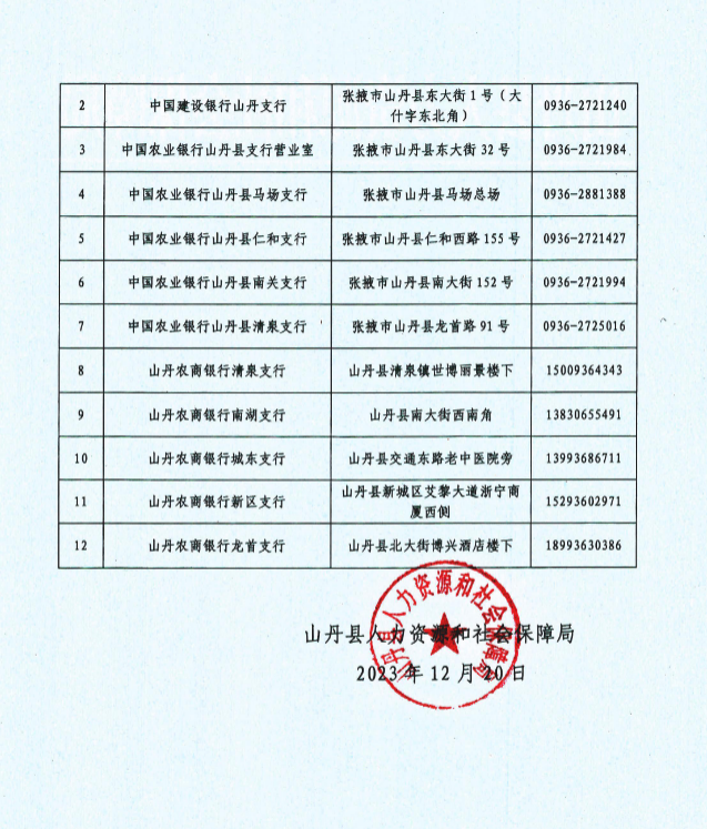 山丹县人力资源和社会保障局关于公布山丹县社保卡即时制卡服务网点的通知