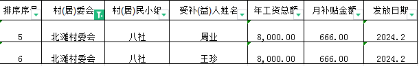 清泉镇北滩村生态护林员2024年2月份工资发放花名册