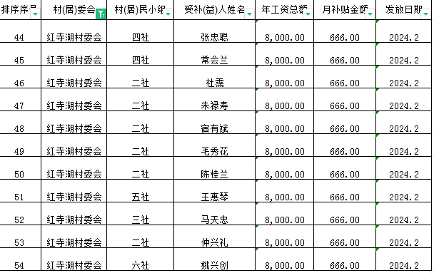 清泉镇红寺湖村生态护林员2024年2月份工资发放花名册