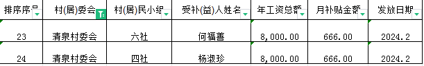 清泉镇清泉村生态护林员2024年2月份工资发放花名册