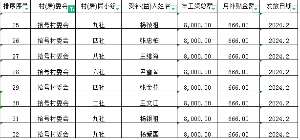 清泉镇拾号村生态护林员2024年2月份工资发放花名册