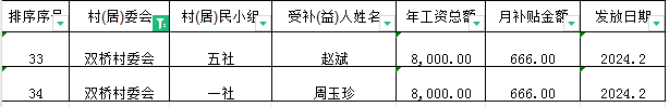 清泉镇双桥村生态护林员2024年2月份工资发放花名册