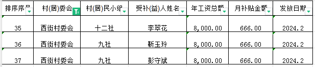 清泉镇西街村生态护林员2024年2月份工资发放花名册