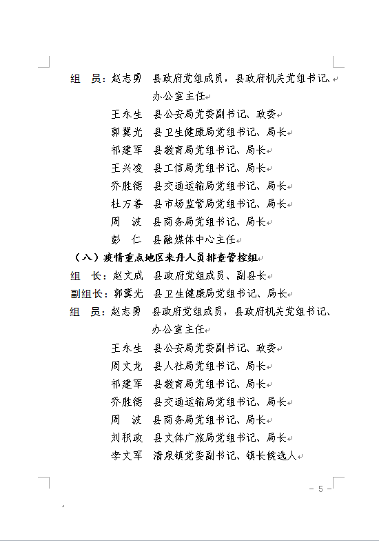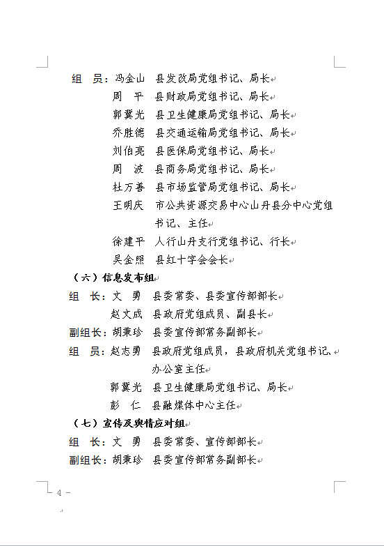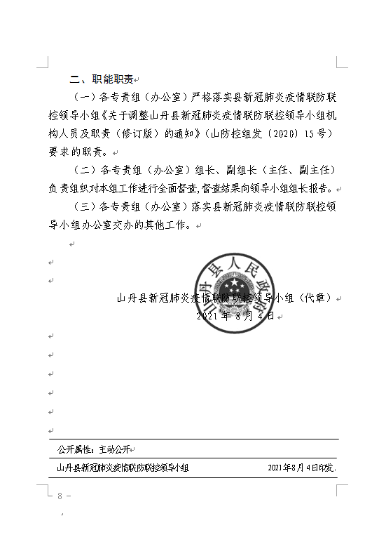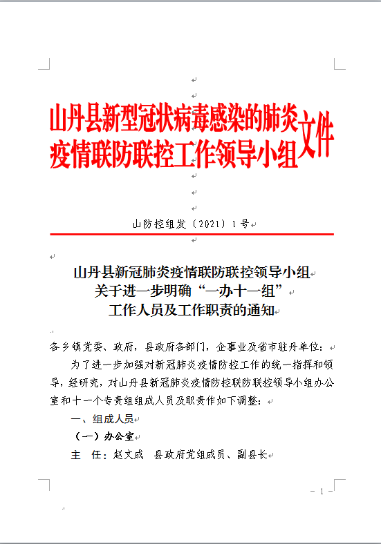 山丹县新冠肺炎疫情联防联控领导小组关于进一步明确“一办十一组” 工作人员及工作职责的通知