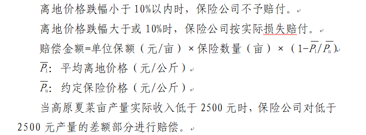 ③不论发生全部损失还是部分损失,当保险面积小于实际播种面积时,按保险面积与实际播种面积的比例计算赔偿金额。当保险面积大于实际播种面积时,按实际损失面积计算赔偿金额。