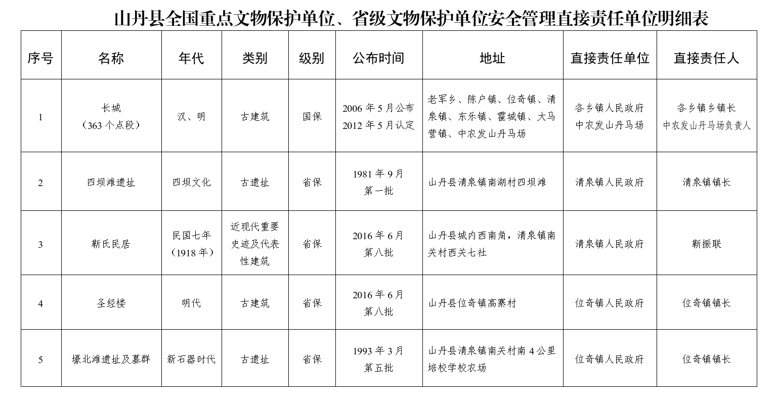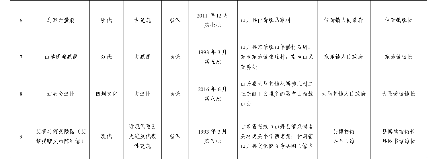 附件:1.山丹县全国重点文物保护单位、省级文物保护单位安全管理直接责任单位明细表