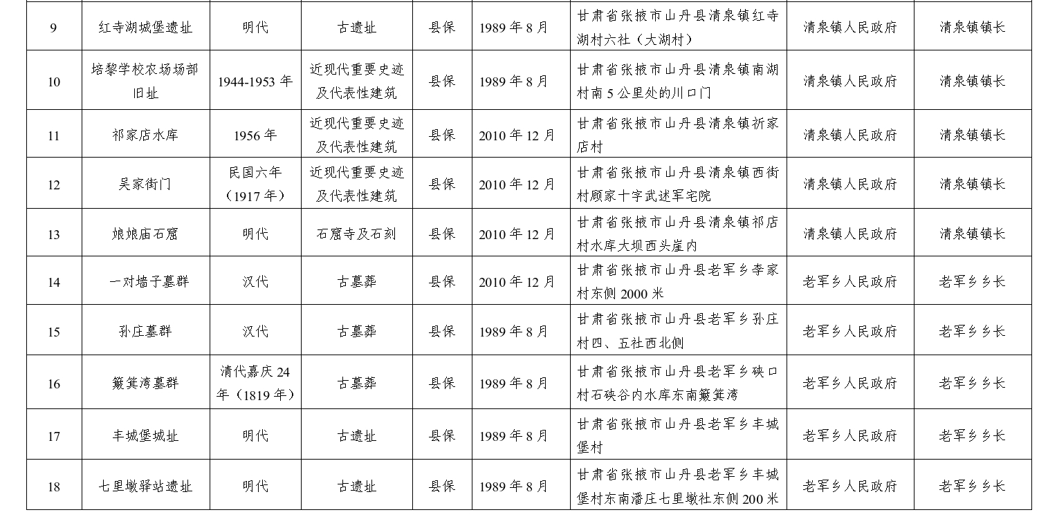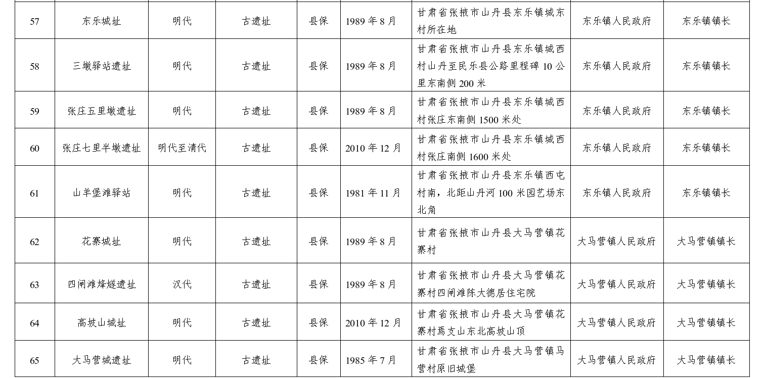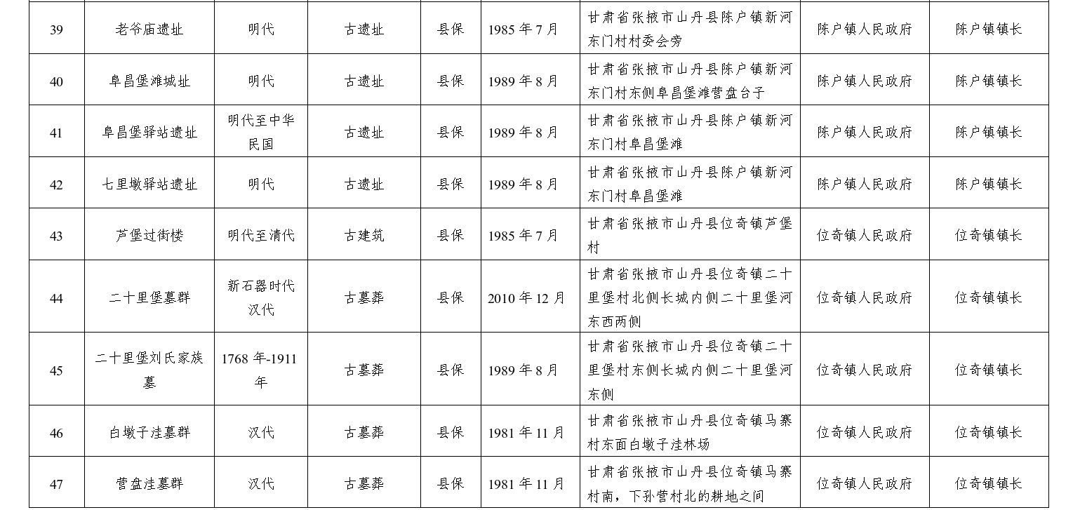 3.山丹县一般文物保护单位安全管理直接责任单位明细表