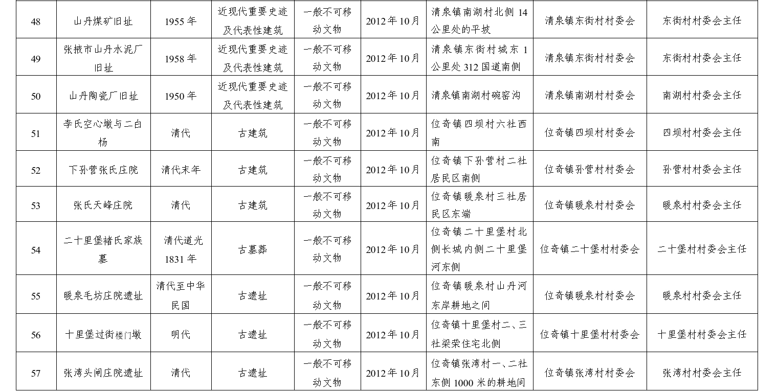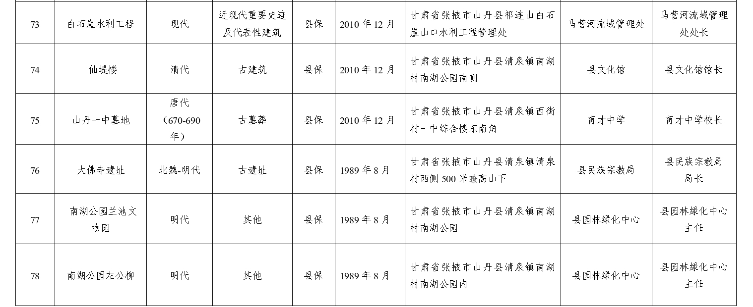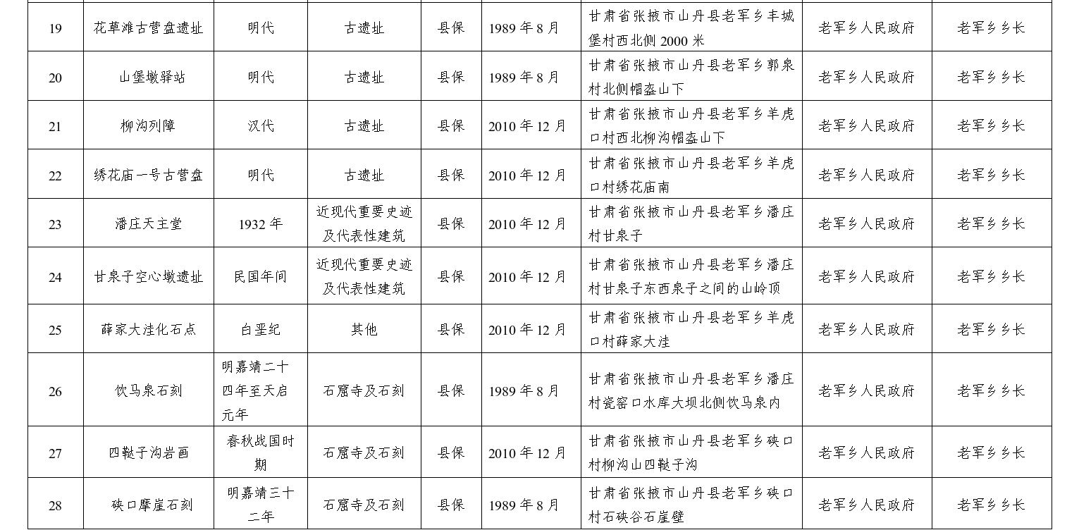 3.山丹县一般文物保护单位安全管理直接责任单位明细表