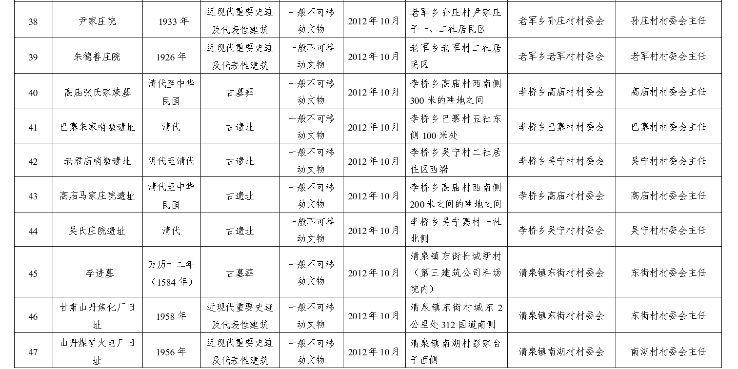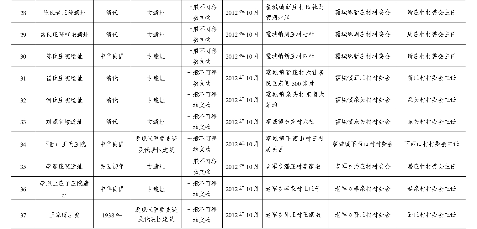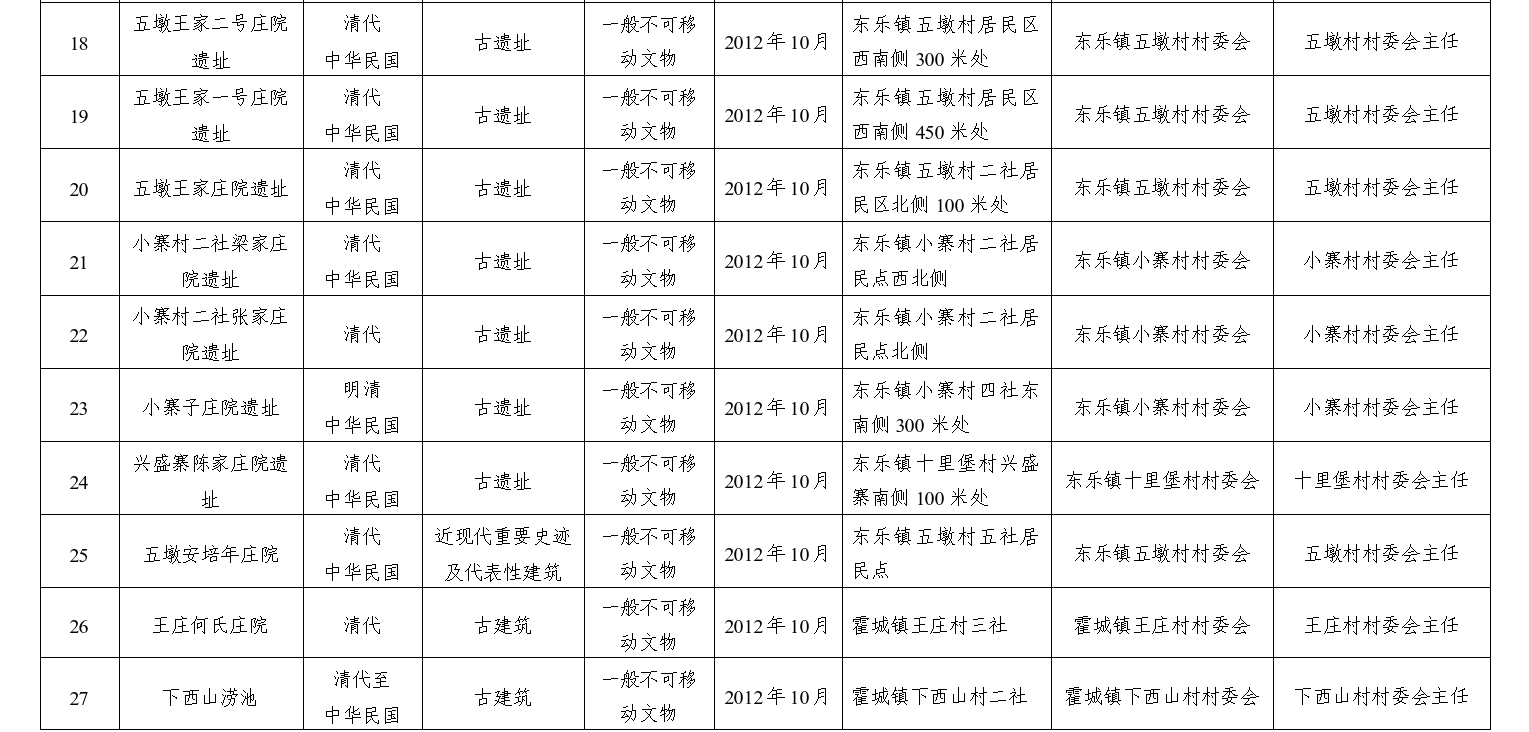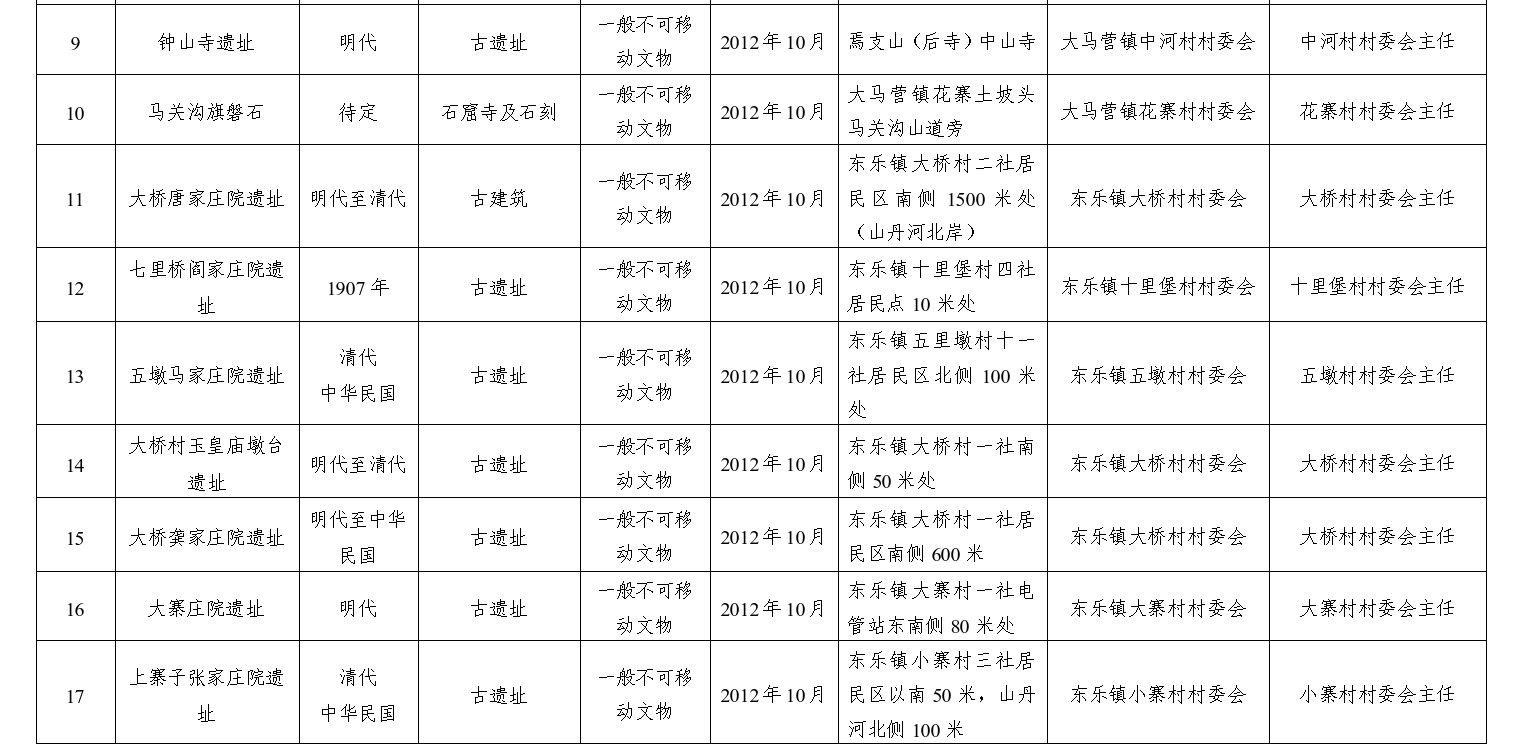 备注:一般文物保护单位所在各乡镇村委会、管理使用单位对一般文物保护单位负直接保护责任,各村委会主任、管理使用单位主要负责人为第一责任人。