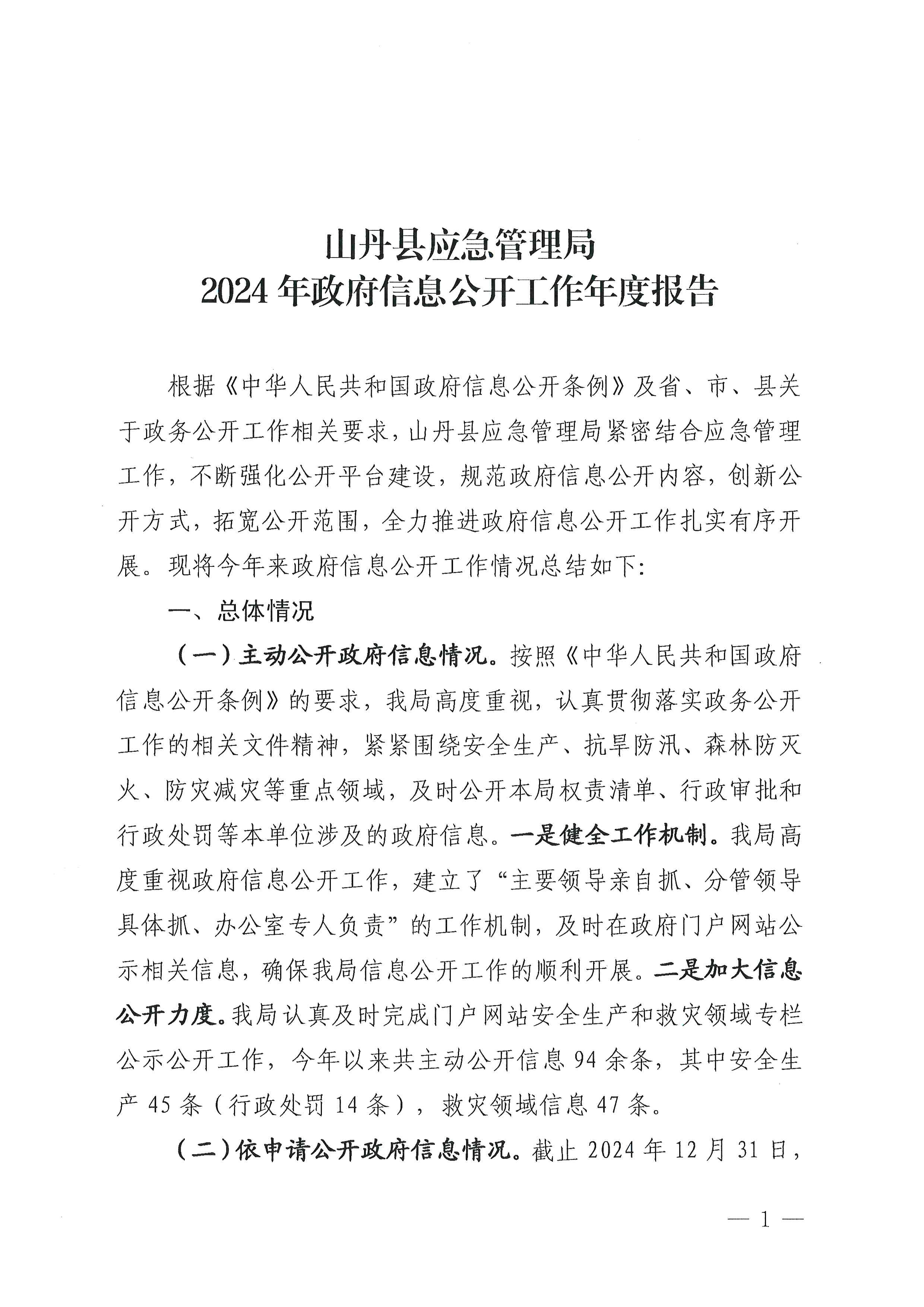 山丹县应急管理局2024年政府信息公开工作年度报告