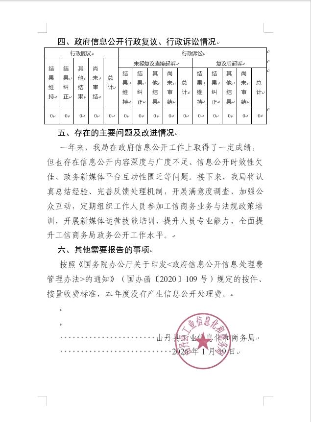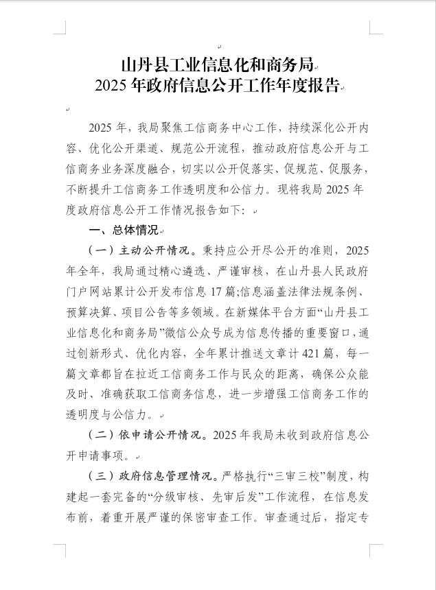 山丹县工业信息化和商务局 2025年政府信息公开工作年度报告