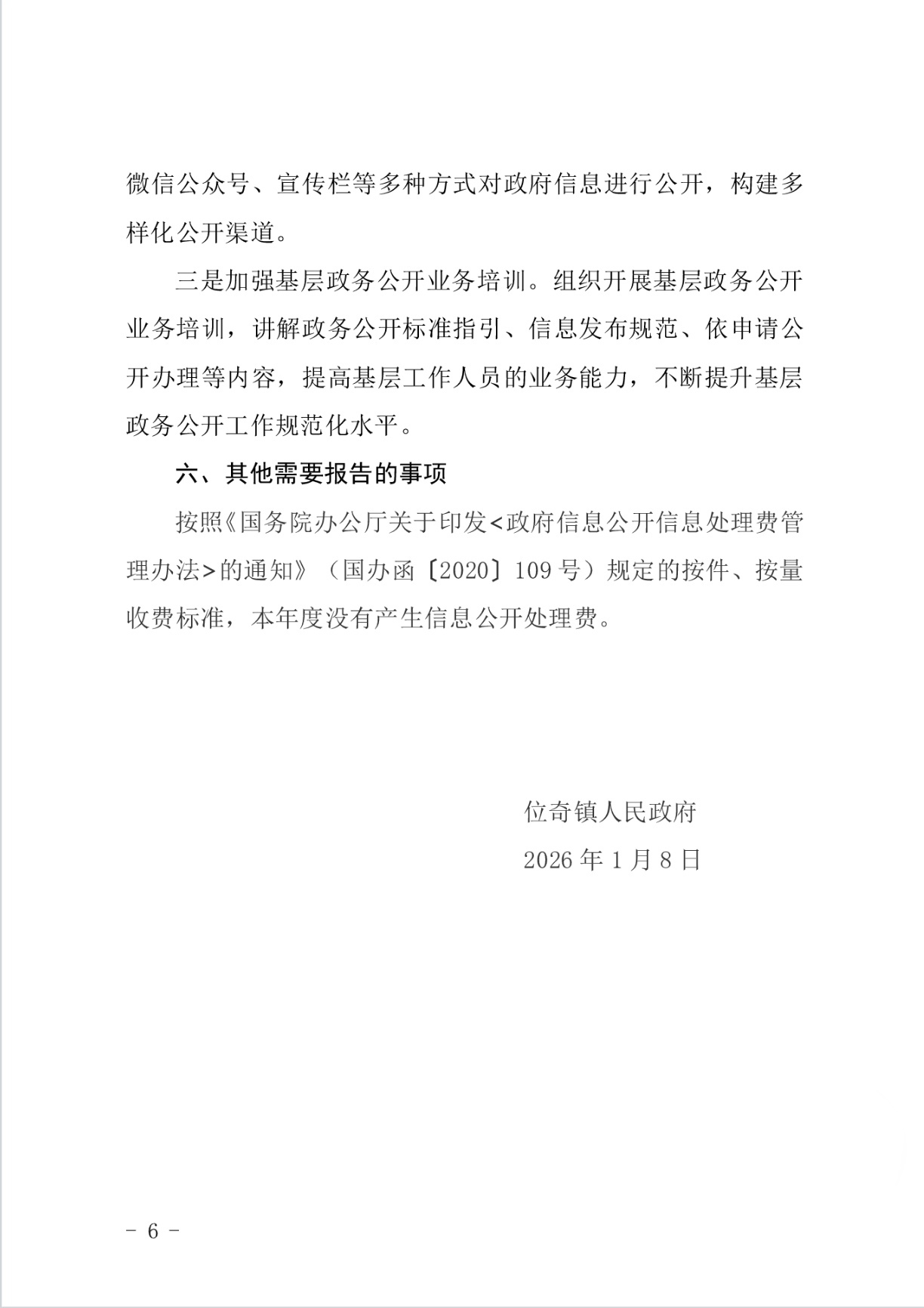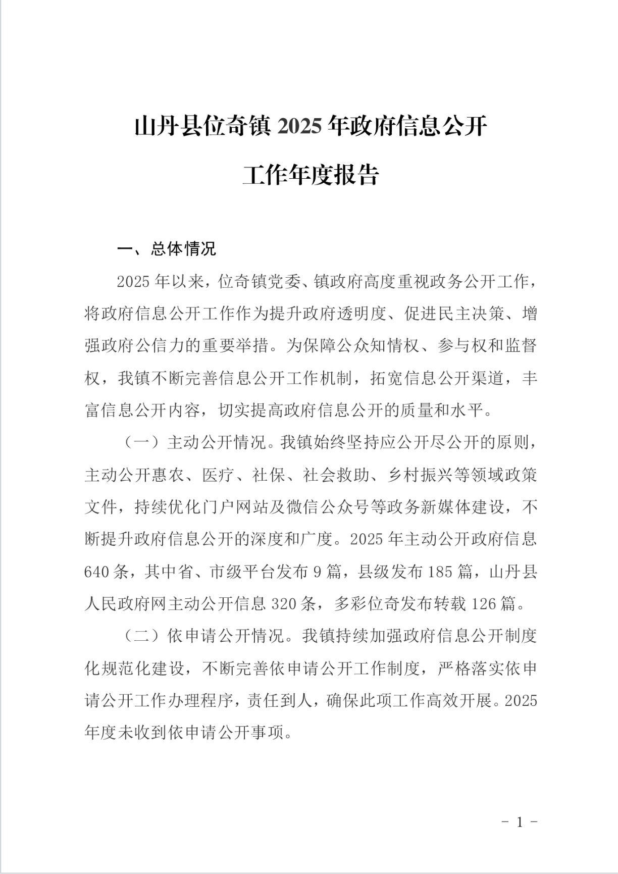 山丹县位奇镇2025年政府信息公开工作年度报告