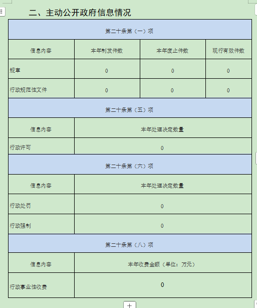 按照《国务院办公厅关于印发<政府信息公开信息处理费管理办法〉的通知》(国办函〔2020〕109号)规定的按件、按量收费标准,本年度没有产生信息公开处理费。也无其他需要报告的事项。