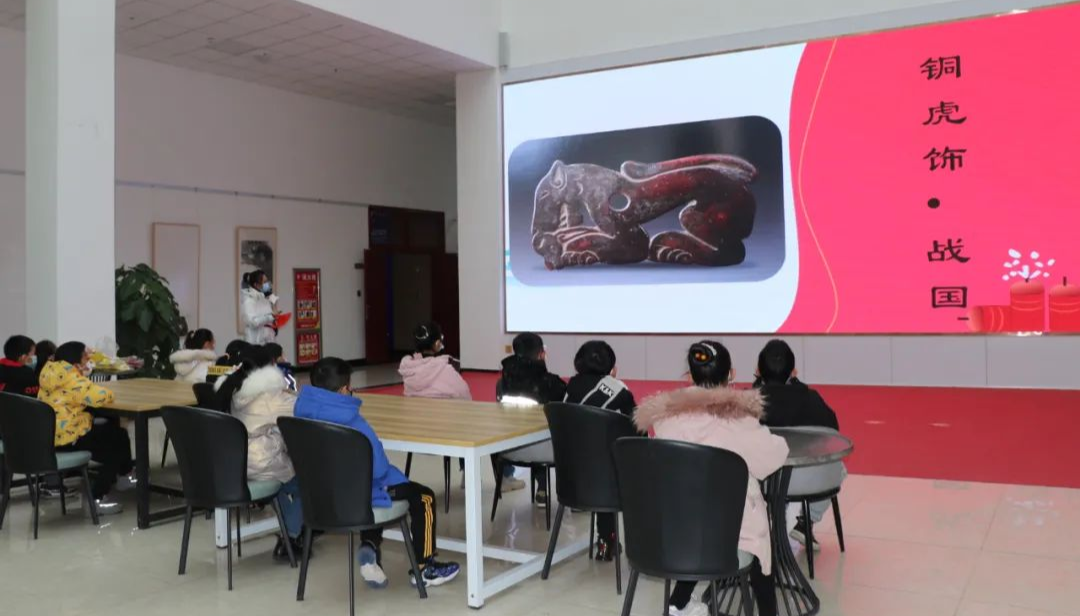 活动中,县博物馆工作人员为孩子们详细讲解了元旦的历史、虎的来历、虎的传说、虎的象征等传统文化知识,并向孩子们介绍了县博物馆馆藏有关生肖虎的文物图片。