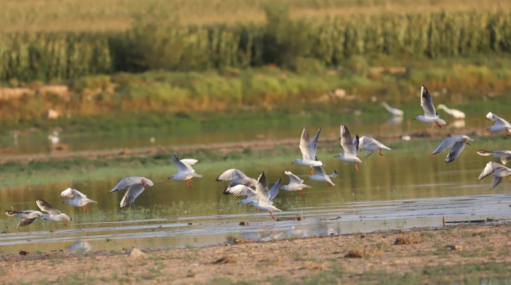 据观测,目前在此停歇的候鸟涵盖鸭科、鹈科、鸻科、鹬科、鹳科等百余种,其中包括黑鹳、遗鸥、金雕等国家一级保护鸟类,以及白琵鹭、大白鹭、苍鹭等国家二级保护鸟类,生物多样性丰富度持续提升。