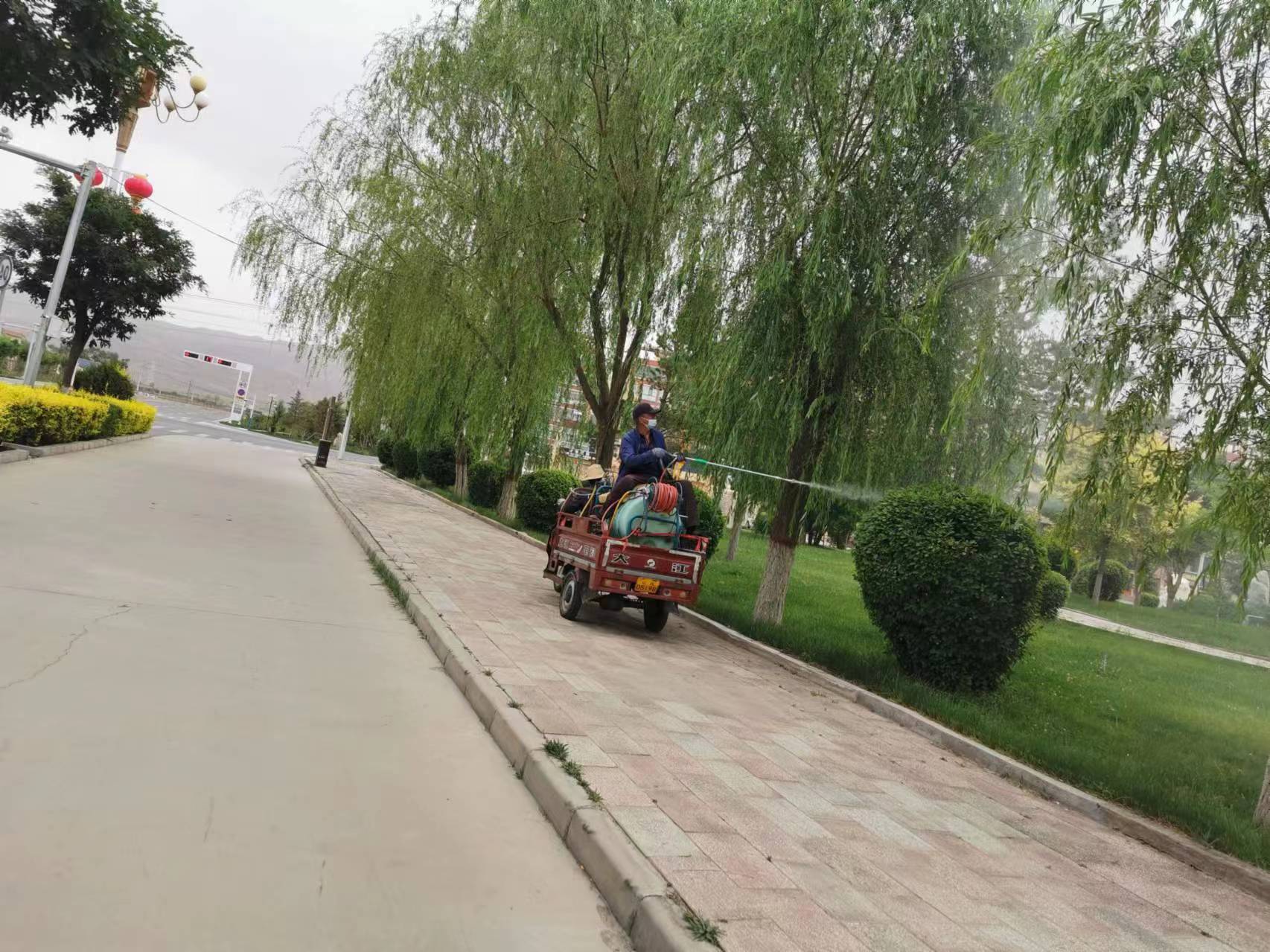 防治病虫保绿植。秉持“预防为主,综合治理”的管护原则,组织人员对辖区主次干道、街头绿地、公园(游园)、广场等绿地的乔、灌木和草花施撒高效低毒药剂120件,并剪除、销毁病虫害枝条,有效控制病虫害的蔓延,确保绿化植物生长态势良好。