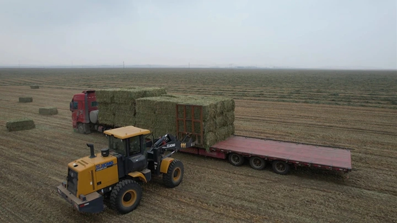 走进山丹马场22.7万亩燕麦草种植基地,大型打捆机正在田间往复作业,将依然翠绿的燕麦草压实、捆扎成整齐划一的方墩。种植户们手持专业检测设备,实时监测牧草含水率,严把质量关。随后,叉车将每个重达400余公斤的草墩稳稳装载上等待的半挂车,构建起一条从田间地头直通养殖场的无缝对接供应链。
